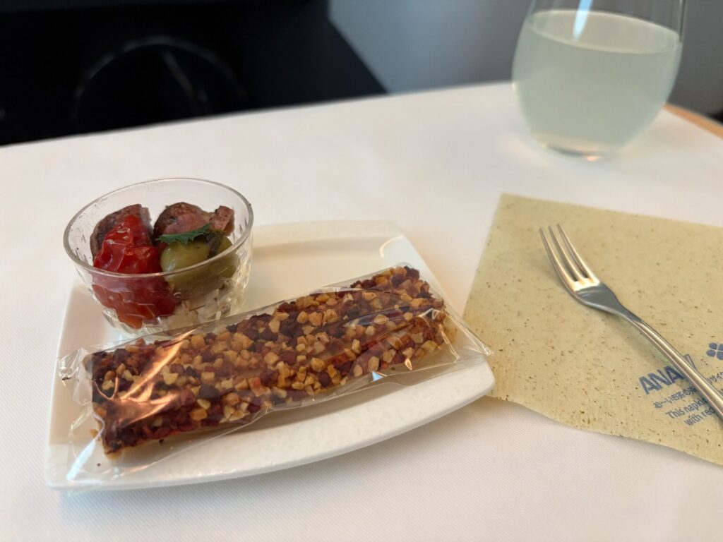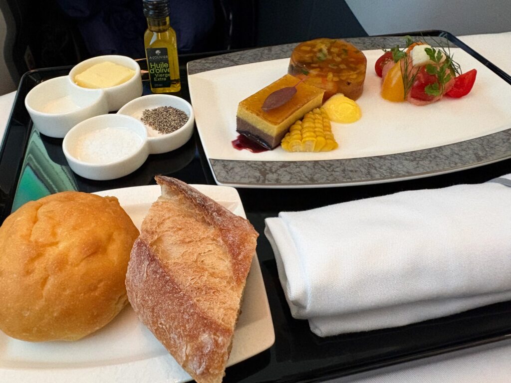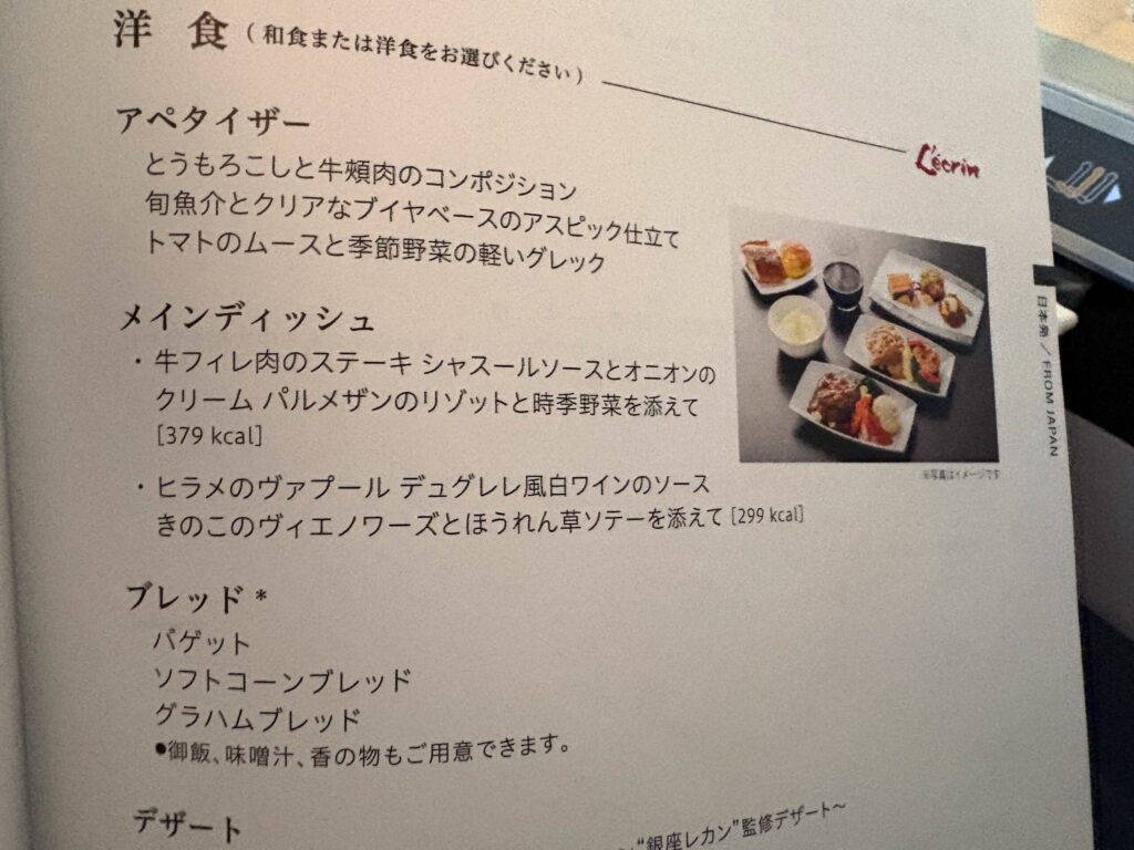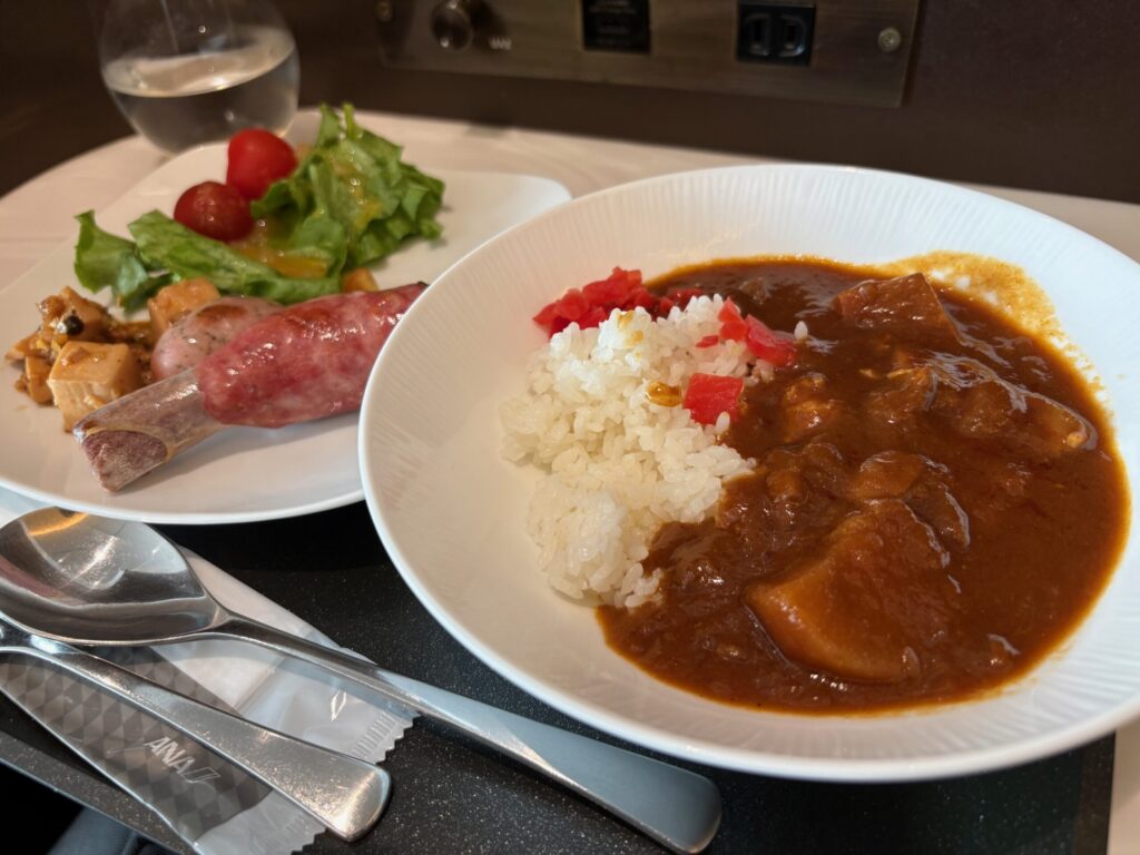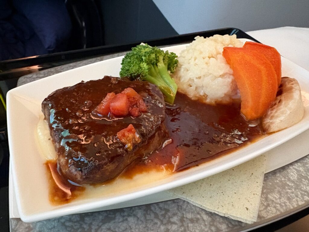 なんと飛行機の上でしっかりとしたお皿とカトラリーでコース料理が食べられます。
