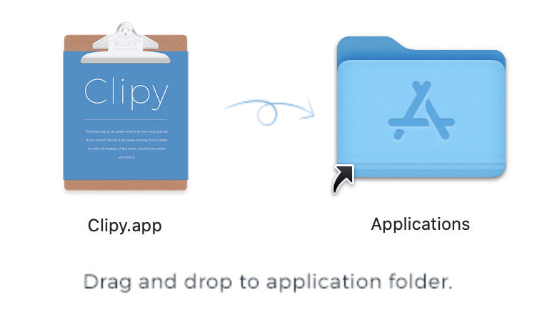 インストールして起動する Clipy公式サイトからダウンロードし、アプリケーションフォルダへ移動して起動します。