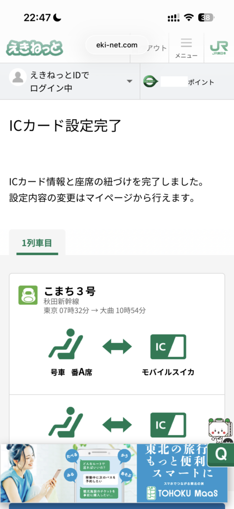 手続きはスマホで完結。座席変更やICカード紐付けはえきねっと!