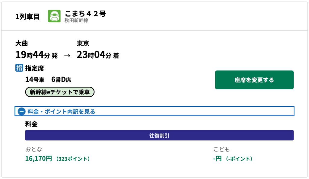 実際にどれくらいお得になっているのか、駅のっとで同じ新幹線の料金を調べてみました。