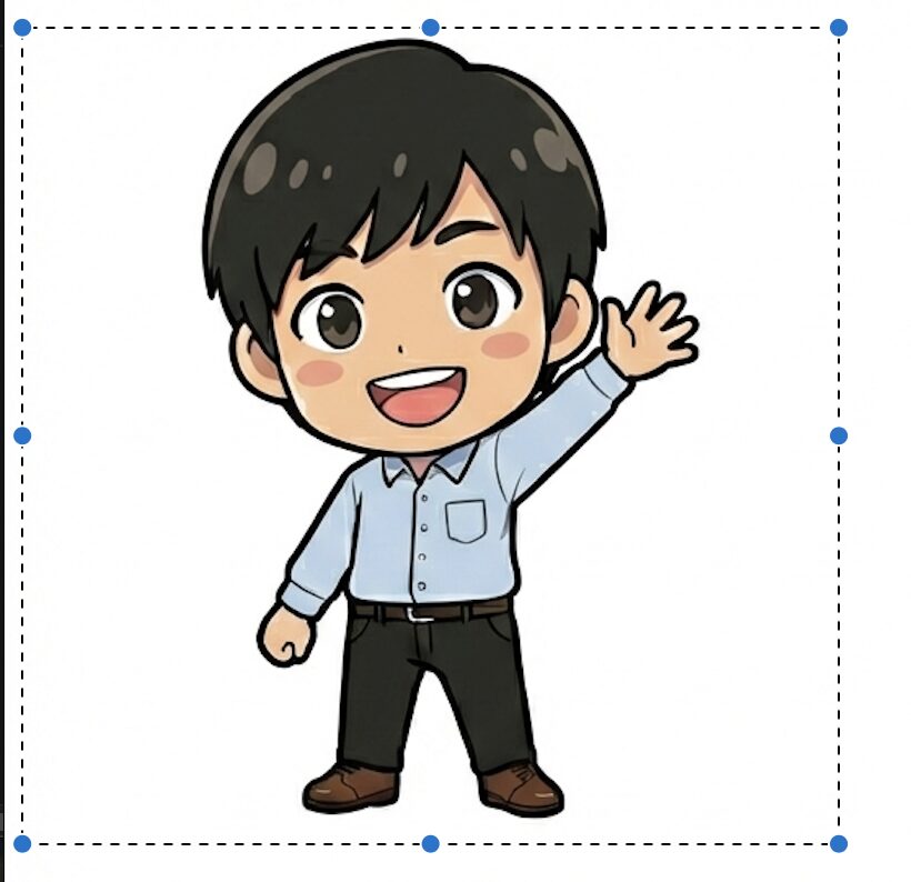 このデザインでも良いのですが、キャラを他の画像と合わせて使用したりする場合、白枠は邪魔になるので削除していこうと思います。