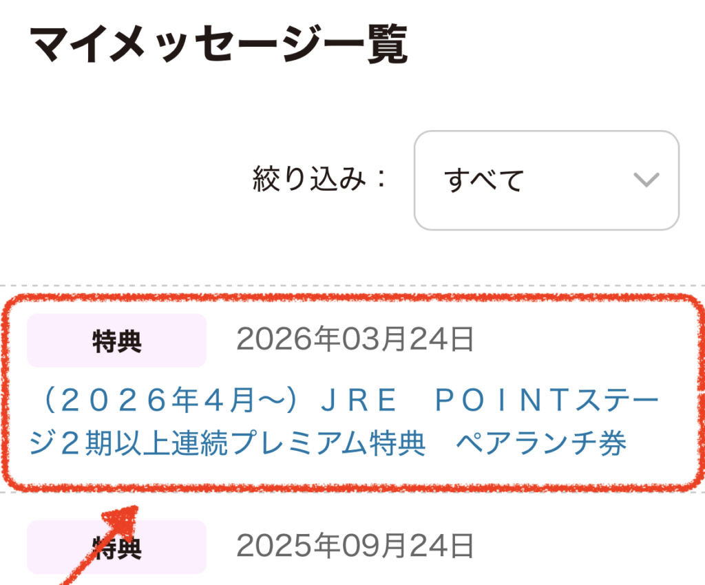 ペアランチ券を利用する場合、JRE POINT アプリに届いているメッセージから専用サイトにアクセスが必要です。