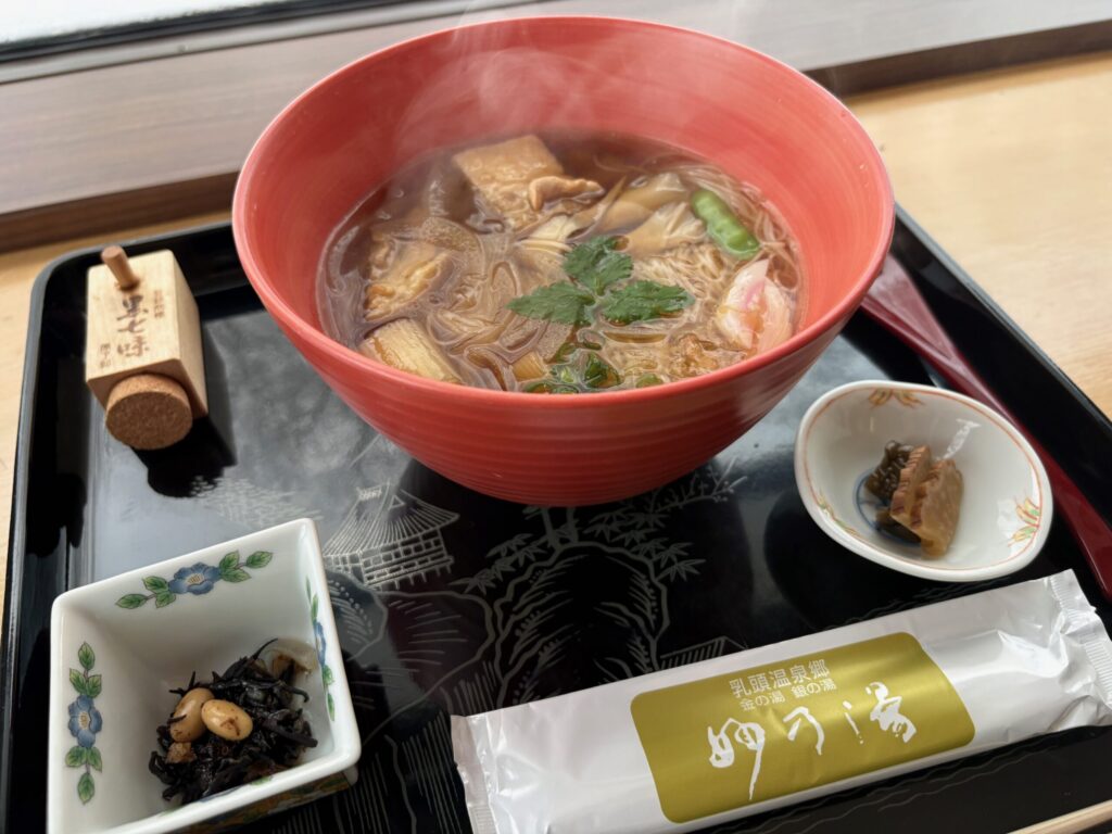 その後、すぐに「妙乃湯」内の「草庵」で稲庭うどんランチをいただきました。