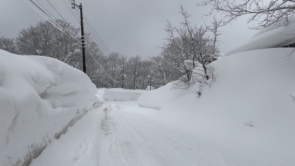 また、雪の壁ができていて、見通しも悪くなっているので、車にはくれぐれもご注意ください。