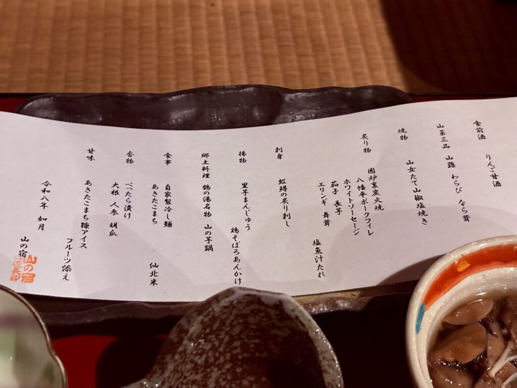 温泉での時間はあっという間に過ぎ、帰りのバスで「山の宿」まで帰りました。